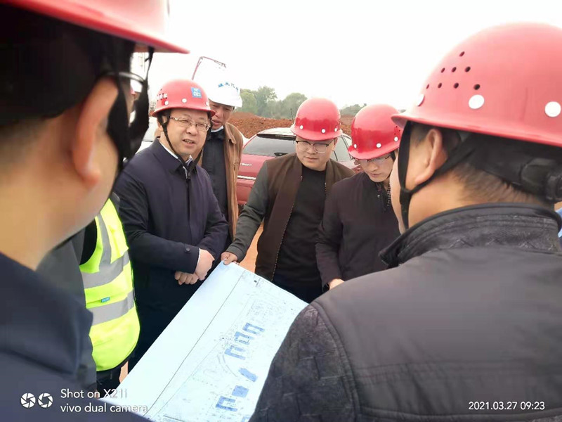 程正棟一行首先前往湖北工程職院新校區(qū)項目現(xiàn)場,實地查看了項目建設進度,現(xiàn)場聽取了項目負責人關于項目基本情況、建設進展和工作計劃的匯報。