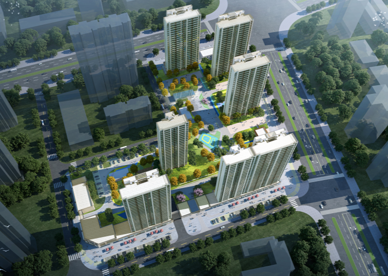 該項目位于黃石下陸區(qū)蘇州路以南,白馬路以西,規(guī)劃總用地面積33261.23平方米,總建筑面積約97710.81㎡,項目容積率2.59,建筑密度21.14%,綠地率30.51%。項目共包含6棟高程住宅樓、2棟商鋪、2棟單層配電室及配套門廳等建筑,項目規(guī)劃戶數(shù)595戶,機(jī)動車停車位646個,非機(jī)動車停車位598個。