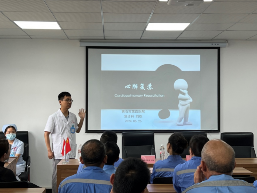 隨后,黃石市第四醫(yī)院急診科醫(yī)生劉權(quán)通過理論講解、示范操作、互動交流和現(xiàn)場演練等方式,系統(tǒng)講授了如何實(shí)施心肺復(fù)蘇術(shù),對確認(rèn)現(xiàn)場環(huán)境、判斷意識、呼救求助、胸外按壓、開放氣道、人工呼吸、重新評價(jià)生命指證等環(huán)節(jié)一一進(jìn)行詳細(xì)講解和演示,并與大家積極互動,幫助參訓(xùn)人員在實(shí)際操作中感受了整個(gè)急救過程,較好地掌握了心肺復(fù)蘇法的操作技能,現(xiàn)場氣氛熱烈,培訓(xùn)效果很好。